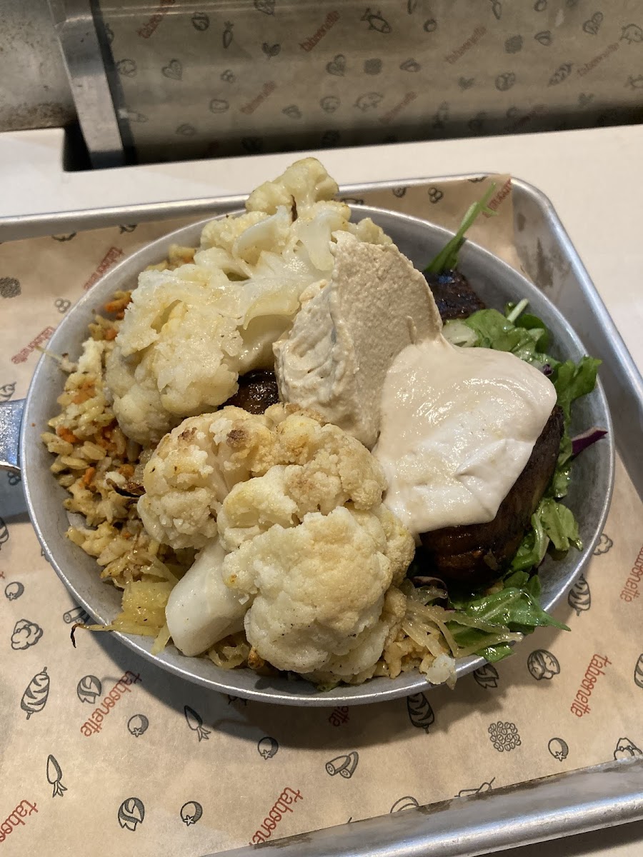- Kruveet (Cauliflower) Pita (Vegan) - Delight in Taboon's roasted cauliflower and fried eggplant, served alongside roasted spaghetti squash, arugula herb salad, hummus, and tahini, all for US$15.00.